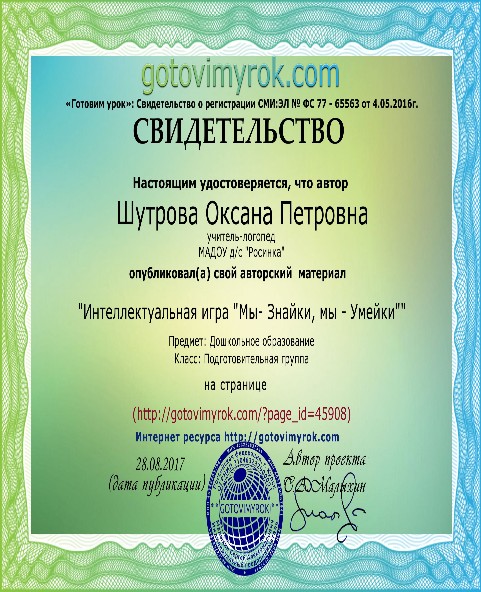 Конспект интеллектуальной игры "Мы-Знайки, мы-Умейки" - http://gotovimyrok.com/?page_id=45908http:// (свидетельство о публикации)